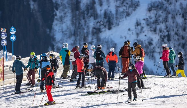 Das Tragen von FFP2- oder medizinischen Masken ist in Innenräumen, in Liftschlangen und sogar in den Sesselliften Pflicht. Im Restaurant sowieso. Schal oder Halstuch vor Mund und Nase reichen nicht. Wenn jemand mal vergisst, eine Maske zu tragen, gibt es es gleich einen freundlichen Hinweis des Personals. Oder sogar eine Ermahnung, die per Lautsprecher über die Pisten dröhnt.