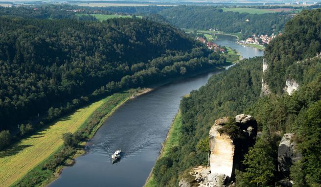 Drei Länder, zwei Hauptstädte, ein Fluss: Wer stromabwärts die Elbe von Dresden bis Magdeburg bereist, trifft auf wenig Schiffsverkehr, aber viel Naturschutz.Die Gäste an Bord der MS «Gräfin Cosel» zücken ihre Handys, um Fotos zu machen. Vor ihnen liegt eine markante Stahlkonstruktion. Die Loschwitzer Brücke ist ein Wahrzeichen Dresdens und hat sich als «Blaues Wunder» einen Namen gemacht.